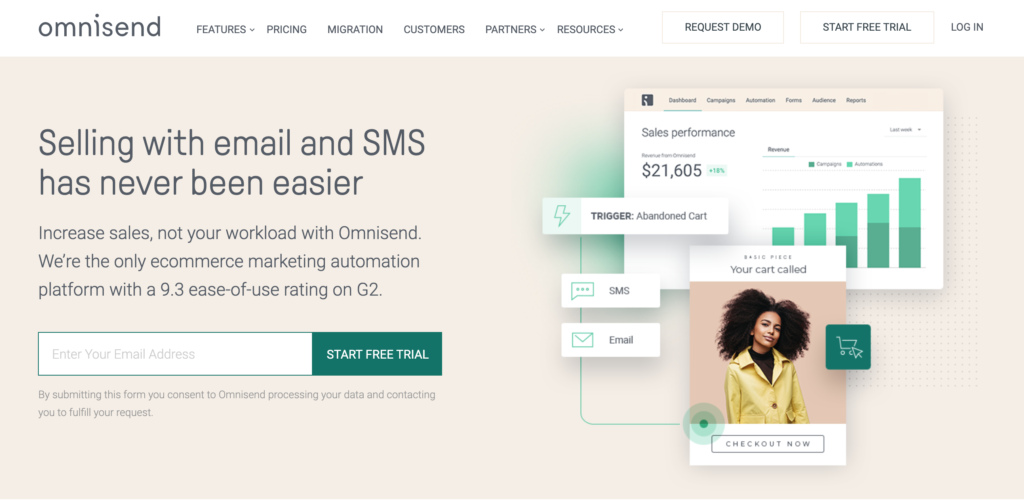 Omnisend is a go-to platform for online sellers who needs an email marketing provider. Similar to MailChimp, with Omnisend, you can create e-commerce-focused email campaigns and automation workflows in just a few clicks. The platform also comes with a visual builder for email, workflows, forms, and landing pages, so it’s just a matter of customizing everything according to your brand.